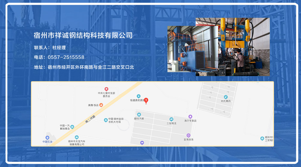 宿州市祥誠鋼結(jié)構(gòu)科技有限公司位于宿州市經(jīng)開區(qū)外環(huán)南路與金江二路交叉口北,公司是一家以建設(shè)產(chǎn)業(yè)化為目標(biāo),匯集大型鋼結(jié)構(gòu)廠房、彩鋼活動房設(shè)計、制作、安裝施工一條龍服務(wù)的知名鋼結(jié)構(gòu)公司。公司現(xiàn)有固定資產(chǎn)1000余萬元、流動資金近千萬元公司?,F(xiàn)有員工40人,大專以上學(xué)歷30人,其中高級工程師1人、工程師2人、會計師1名。各工種持證上崗率100%。高效化的年青團隊為公司帶來了蓬勃發(fā)展的動力,全體員工以務(wù)實的態(tài)度,拼搏的精神,創(chuàng)造著企業(yè)的每一天。 公司組織結(jié)構(gòu)嚴(yán)格按現(xiàn)代企業(yè)制度設(shè)計,管理機構(gòu)設(shè)置合理,制度完善,各部門分工明確...